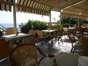 もちろん、毎朝の朝食はいつもの海に面したテラスでいただきます。