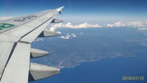 その後、飛行機が飛んだあと。いったん海側に出てからタオルミナの上を通りエオリア諸島の上を通りローマに着いた。