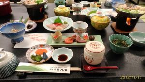 それに驚いたのは夕食は2組だけ、朝に見ると3組になっていた。さみしいさみしい。でも、日帰り温泉客は多く。夕方の温泉は10名ほどいたが、朝のお風呂は2名だった!