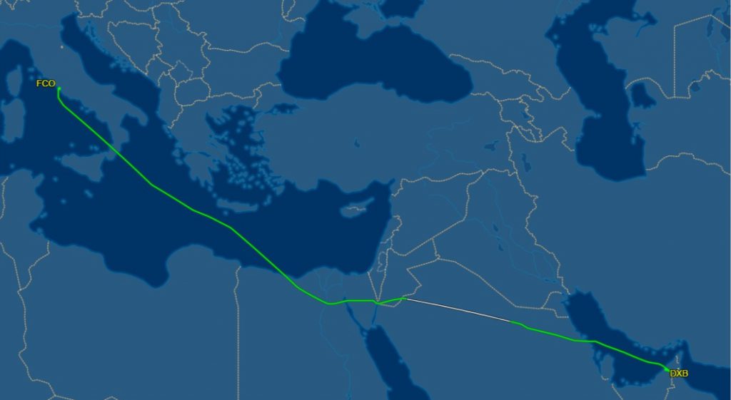ジェット気流の向きと合わせると、行きはジェット気流に逆らわない様に、出来るだけ避けてインドに向かう。インドからドバイは風の流れが行く先方向に変わるので、それに乗る。