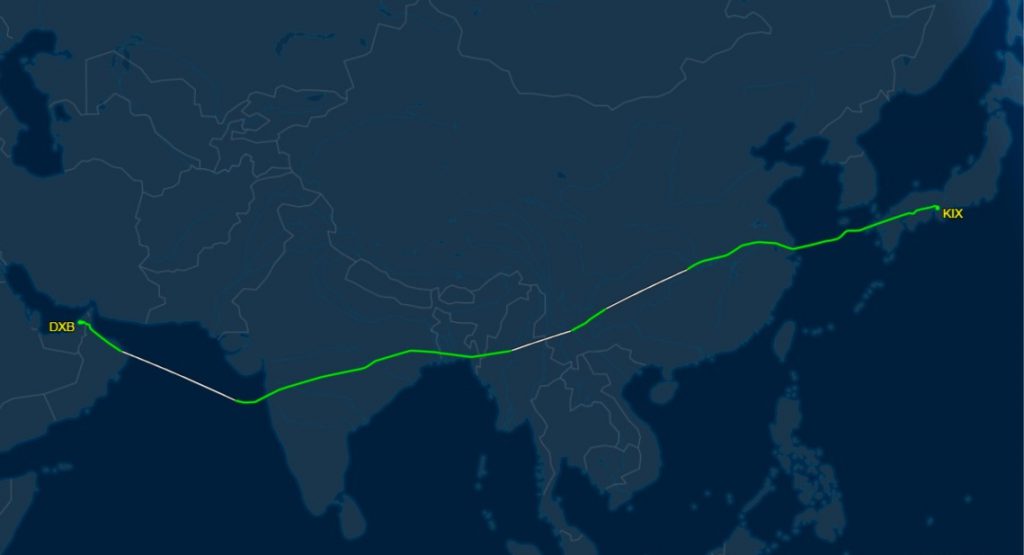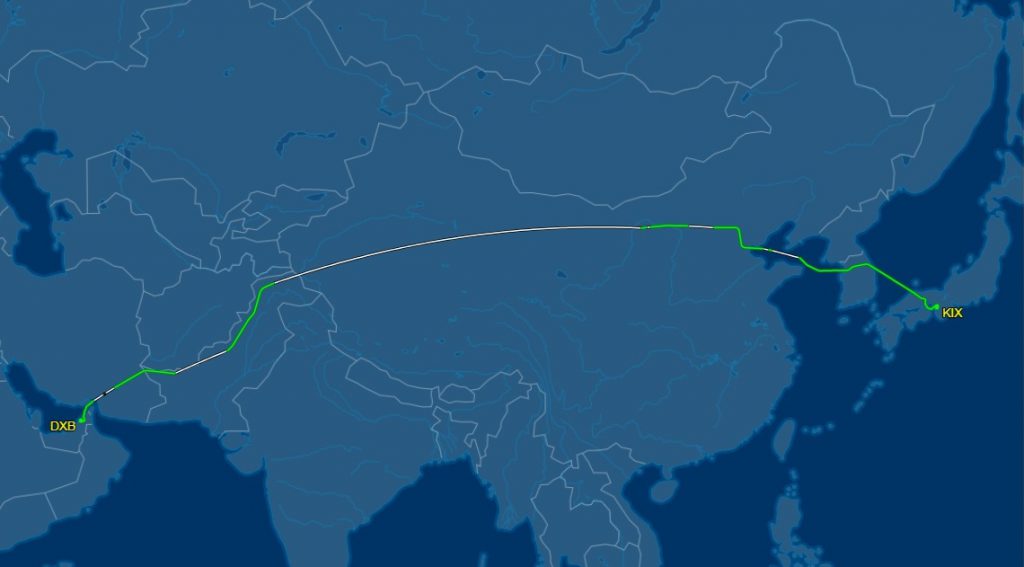 タンカー火災後も火災前も同じ航路を使っている。 行きはインド上空を通過、帰りは中国西域を通過。
