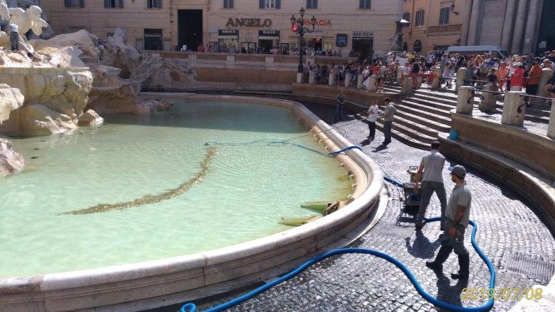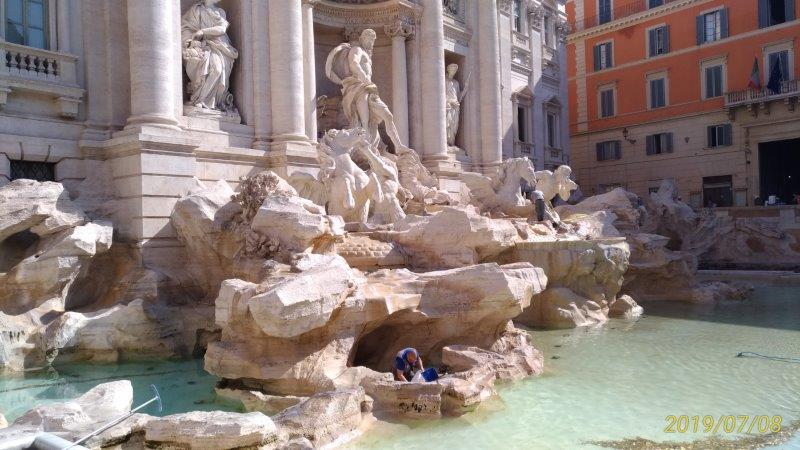 ここは月曜の朝だからか、コインを集めて掃除してました。(笑)だから、投げ込みずらい。(笑) こっそり、端っこから投げ込みましたけど。後ろ向いて、もちろん1回だけ! 過去にもこれをやっているので、もう5回程度はローマに来れてます。さすが、トレビの泉ですね。