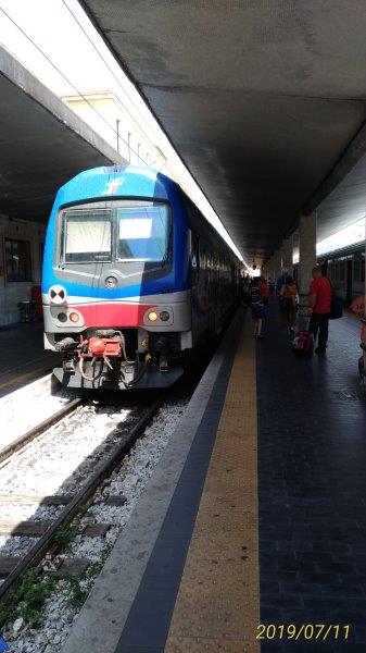 電車は特急ではなく、普通で。しかもピザ方面行は少しわかりにくいな場所にあります。向かって左奥の方に入っていくとピザ行きの普通電車の入場口があります。