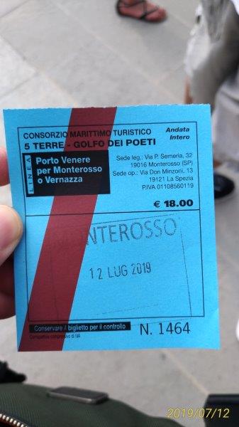 初日は観光です。やっぱり、奥さんを船に乗せてポルトベネーレに連れて行こうと、朝の一便目を目指して船着き場に向かう。船の時刻表を事前にチェックしておくのがコツです。チケットを船着き場に行って購入。