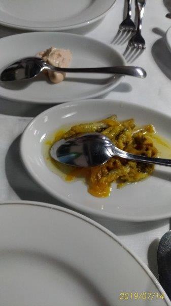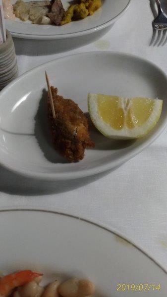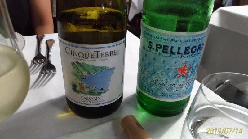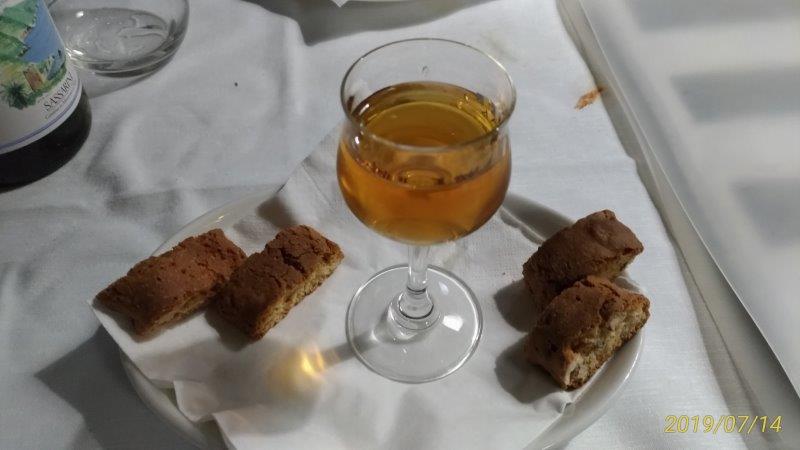 昨日も飲んだモンデロッソアルマーレのワインと前菜盛り合わせを注文し、メインはフライの盛り合わせ、そして奥さんはジェラートをデザートにしたが。私はデザートワインに挑戦!有名なシャケトラのデザートワイン 少し高いよ・・・でも、これは良かった。一本買うとすごい値段なので、これで良かったと思う。