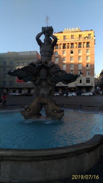 かなり酔って、バルベリーニ広場の噴水に座り込み。
