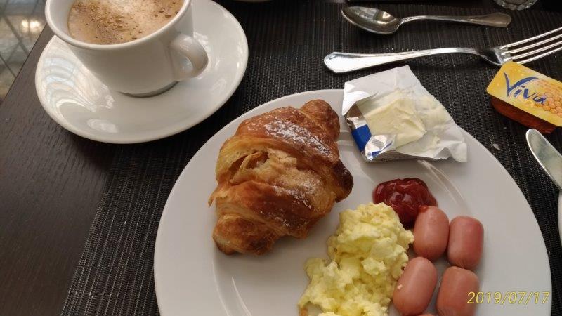 まずは、ホテルの朝ご飯、ここはなんでも狭い。レビューに小さいお部屋に小さい朝食と書いてあったのが、的を得ている。(笑)