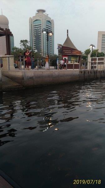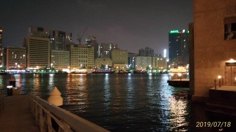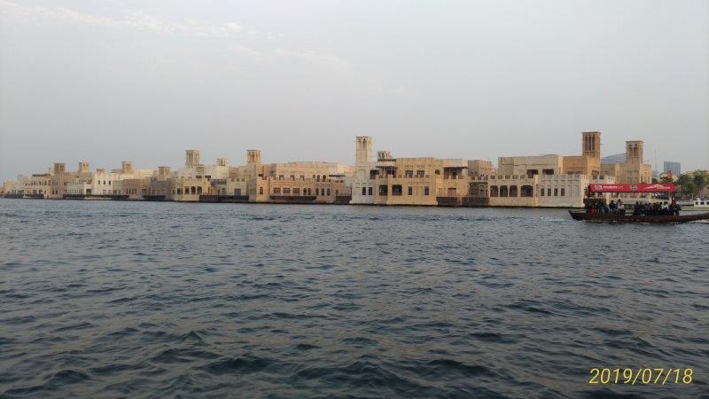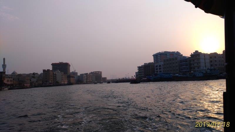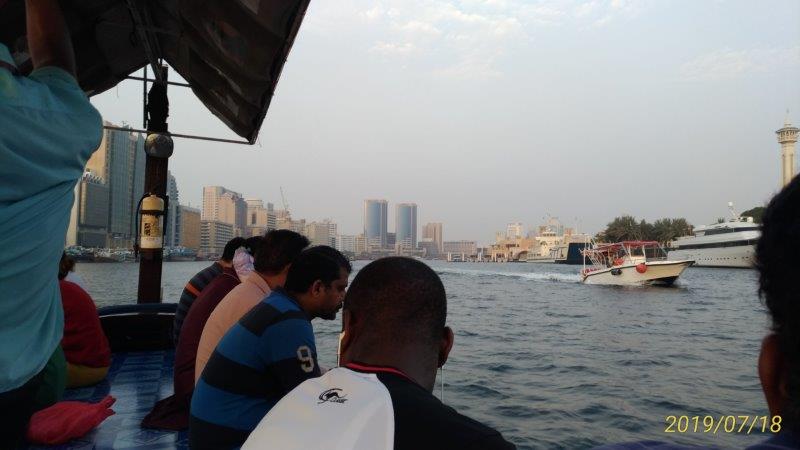 この後、ホテルに帰ろうとしましたが、体調が戻ってきたので運河を見に行きました。そこからスークを見てみると、その近くに渡し船があったので、その渡し船で対岸に渡ってみました。運賃は1AEDだったかな。30円でした。地元の人が利用するものみたいですね。船が満杯になったら出発、出発前に皆さんから1AED徴収してました。しかし1AEDで渡し船が楽しめるって楽しかった。