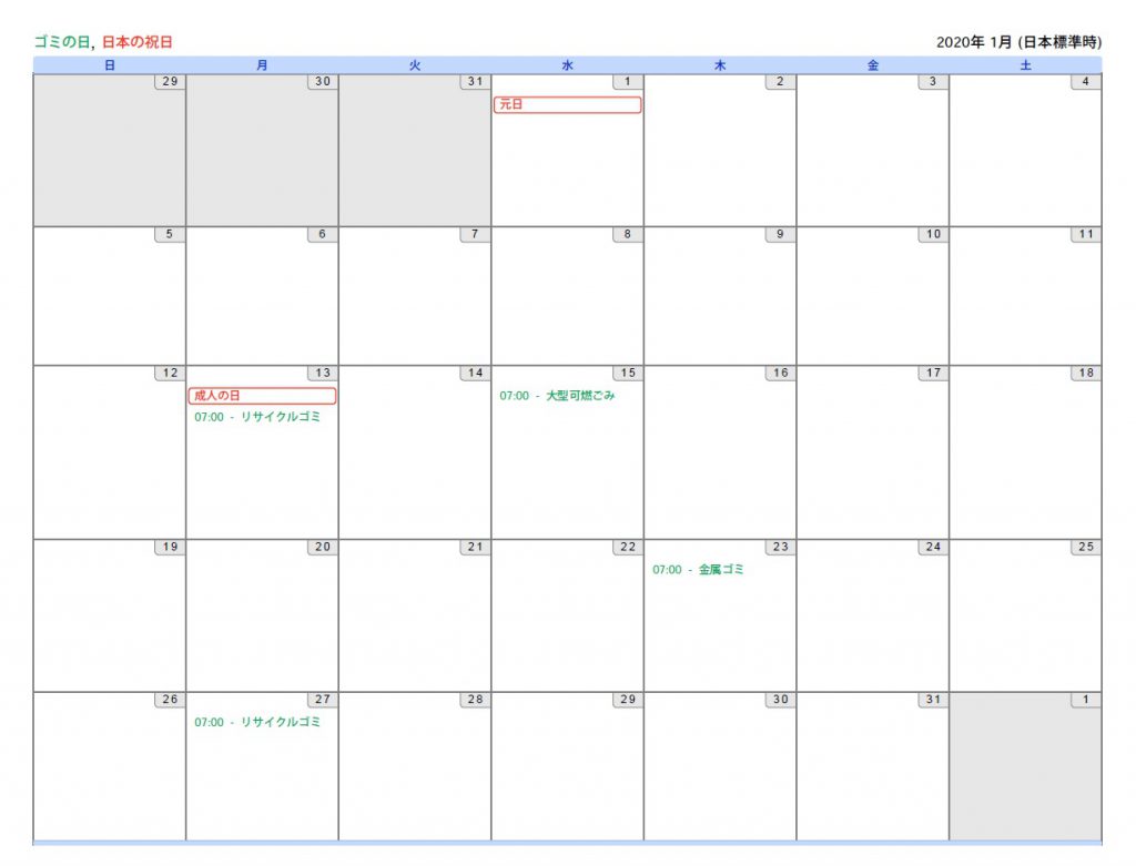 そこで、自作すれば安いんじゃないかと考え、奥さんにお話しすると。。「Googleカレンダーで出来るんじゃない」と言われ。「え?印刷できるのかなぁ」 と疑うも、見てみると・・・ あ!出来る。(笑)