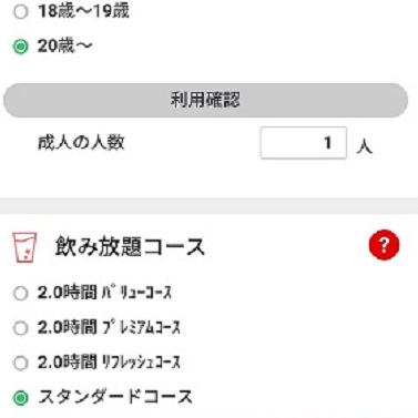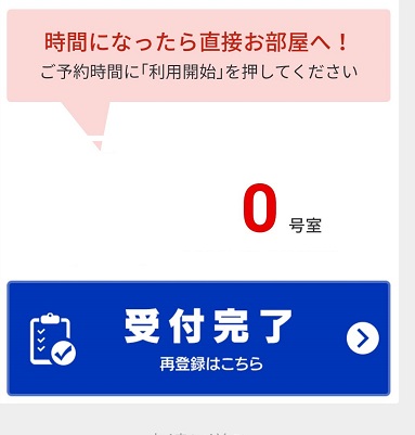 まず、時間前30分でお部屋番号が出るので、受付を開始する。すると年齢とコースを聞いてくる。これに答える。