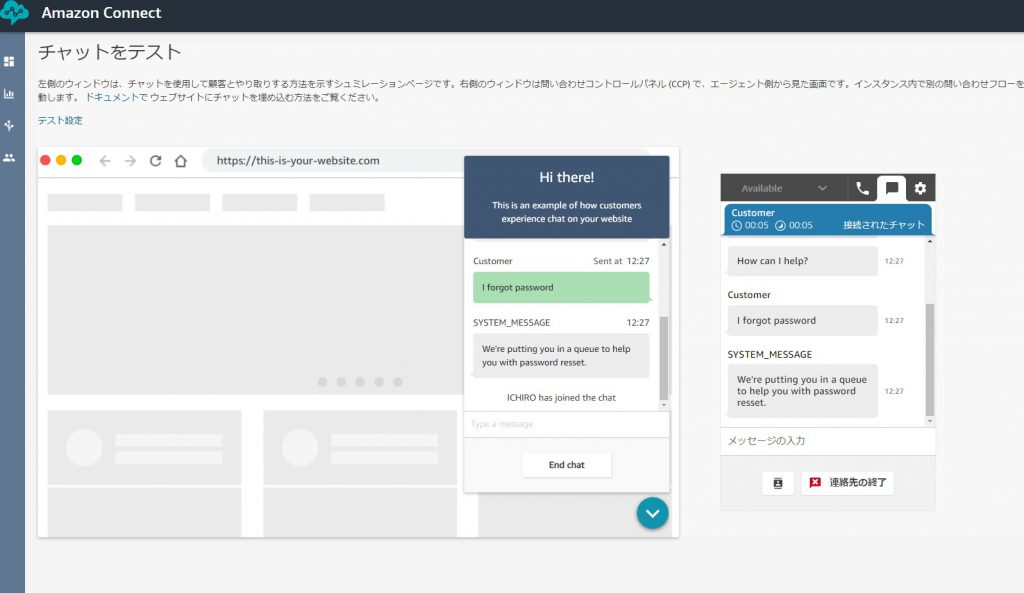 最終的にはチャットと音声通話からコールセンターに連携する方法が作れます。もちろん、コールセンターの受付先はシステムでの振り先のPCなので、それが自宅であろうが会社のコールセンターブースであろうが関係ありません。PCを使ってのソフトフォンとチャットで対応可能です。