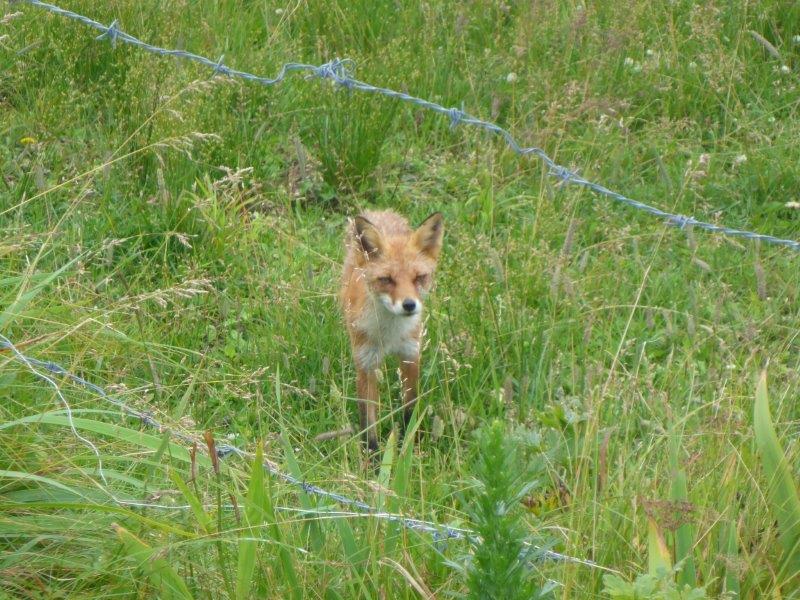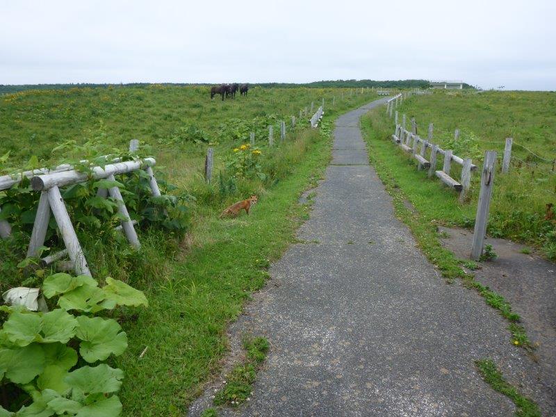 ここは馬が放し飼いになっている。そして、なぜかきたキツネがいて、なにかもらおうとついてきた。これも誰かが餌をあげたのだろう。ほんと彼らの事を思うと、絶対にしてはいけない。