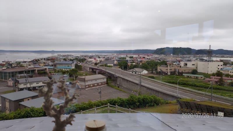 チェックアウトし、どんどん車で走る。釧路のバイパスを抜けて厚岸に向かった。厚岸の海岸を走るのがちょっと楽しみだったのだ。また、その前に道の駅でランチという計画もあった。トリップアドバイザーに書いてあった。道の駅、少し頼みしみだった。下の写真は道の駅の屋上から厚岸の街を撮った写真だ。