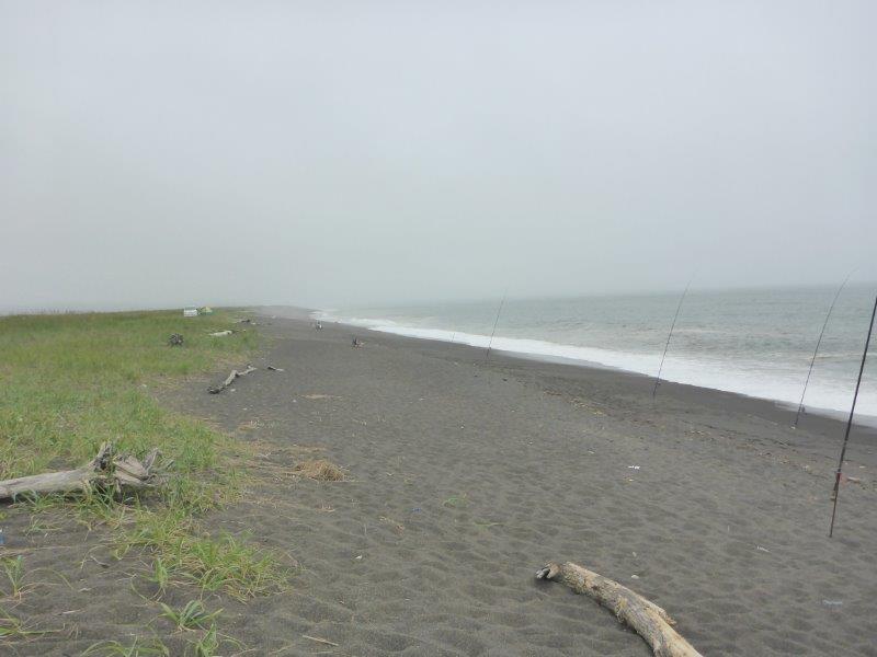 さらに南に南に走ると、海岸近くに来ると、やっぱり霧が出てくるんですね。ここは8年前も来た「湧洞沼」の砂洲部分です。砂洲大好き人間にはたまりません。