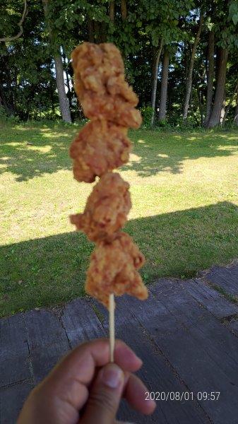 この先は六花亭の庭園に行こうかと思いましたが。近所の道の駅でまずは唐揚げ棒を見つけてベンチに座っていただきました。その後、近所でジェーラートを食べて満足したので、庭園はやめました。