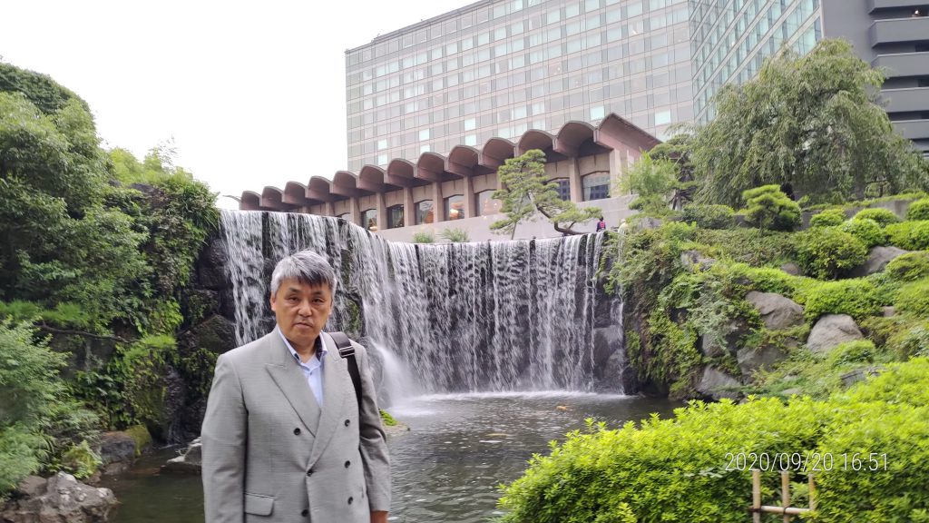 その前に、ニューオータニの庭を散策してみた。特に「滝」が見たかったのだ。また、庭を散策中にシェフが庭を見ている姿も見見ることができ、ラッキーだった。