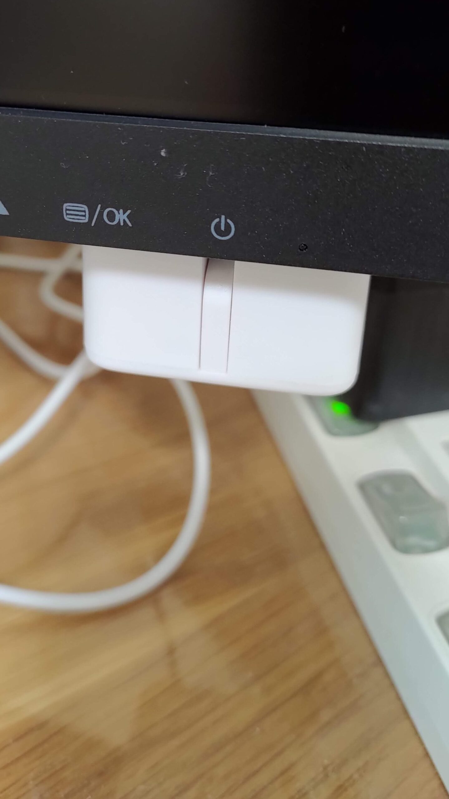 次に、購入したのは良いけど、どう使うべきが迷っていたSwitchBotのBotというスイッチを押してくれる機器だ。SurfaceのDoc2を購入してから拡張ディスプレイとして利用しているPhilipsのディスプレイ電源をONOFFすることが案外面倒なので、これにSwitchBotを取り付けて音声でONOFFすることにした。上の写真の「ディスプレイ」というデバイス名に変えている。つまり、「OK Google ディスプレイ」というとスイッチが押されるのだ。下記の写真です。