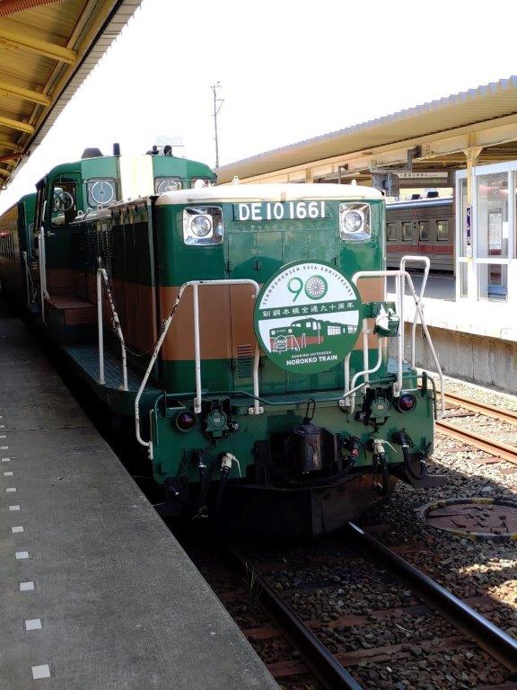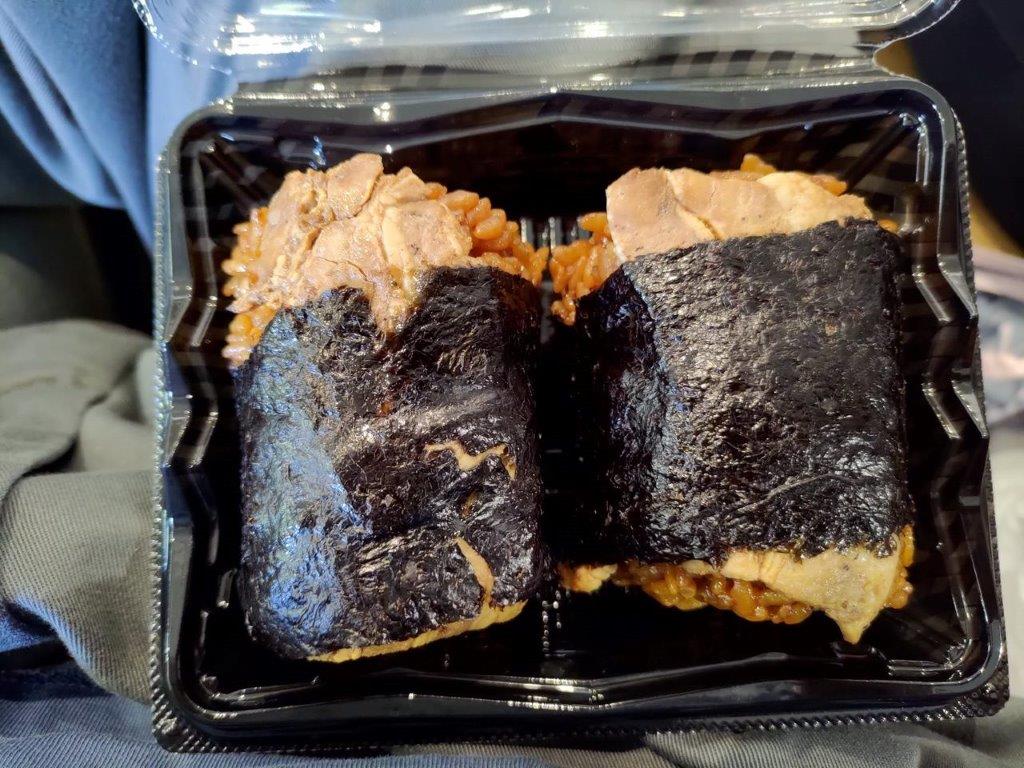 帯広に2泊して帯広を満喫し、次は特急おおぞら1号で釧路に移動し、花咲線で厚岸に移動だ。乗り換え時間があるので、釧路湿原のこっろ号に乗る。ホテルの朝ごはんは高いので、駅で豚丼おにぎりを2個買って、それを一個ずつ分けることにした。年寄りなので、これで十分だ。撮り鉄まがいにとってみた。