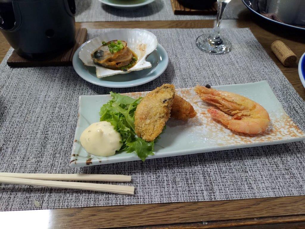 自分で購入したワイン(シャブリ)をホテルに持ち込む事を許してもらったので、シャブリと牡蠣を食べて大満足だ。ここの料理は材料が最高だし、もちろんフレンチではないがシェフの腕も良いので、最高においしいし、楽しい! 大型の素晴らしい牡蠣とシャブリで最高のマリアージュだった。
