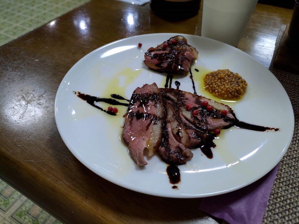 二日目のディナー!マルサネをシェフに渡しておいたので、赤とのマリアージュを考えてローストビーフを添えてくれた。ありがとうございました。すでにお昼で飲みすぎており、ワインが全部は飲めなかった。。。