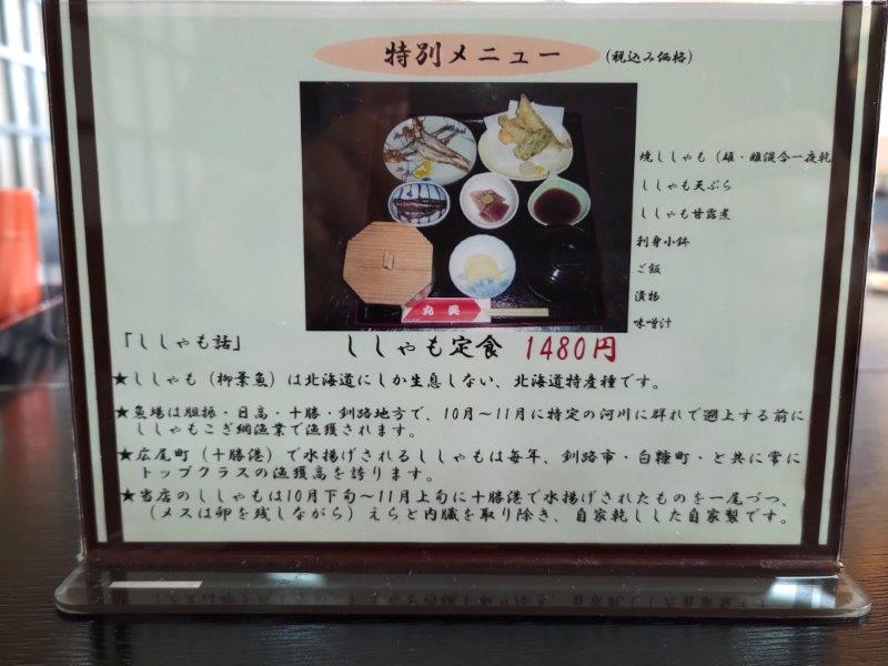 帰りに何年か前に行った。お店に行った。シシャモが前よりいまいちだった気がする。