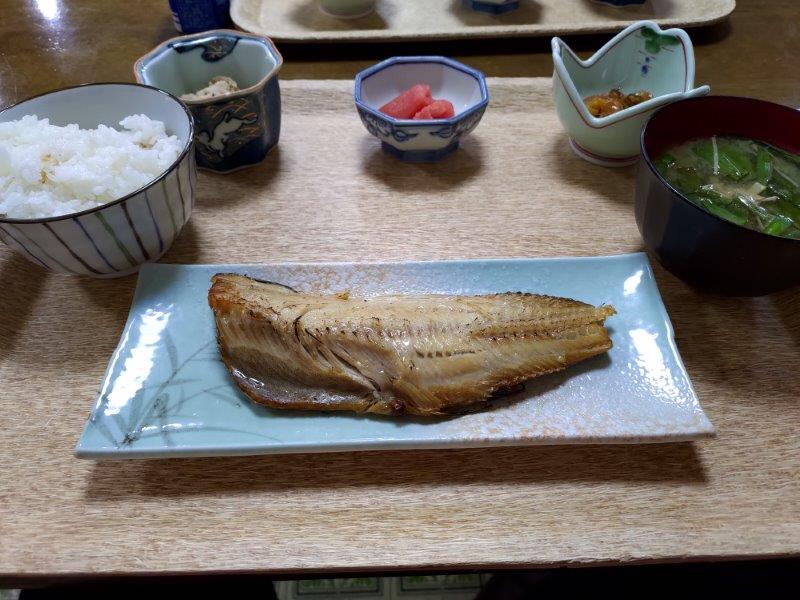 まずは。朝ごはんですね。これはホッケです。やっぱり関西で、このほっけを見ることはないと思いますが。さらっと朝ごはんに出るのがすごいですね。うーん、楽しい!