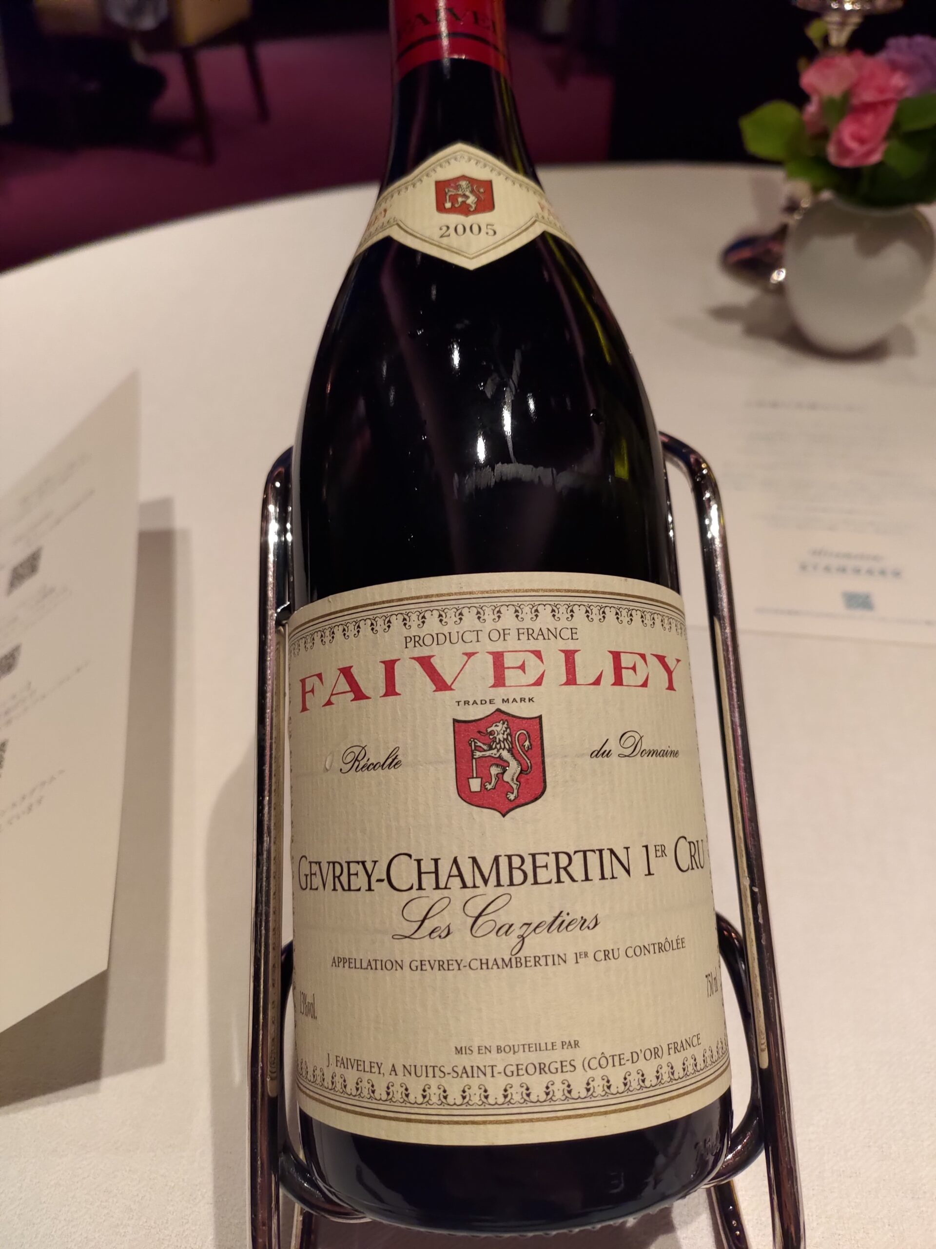 ちなみに、ワインはジュヴレ=シャンベルタンにしました。ラベルはどこかで見たと思ったら、東京駅前のサンス・エ・サヴールで飲んだワインと同じ作り手だった。