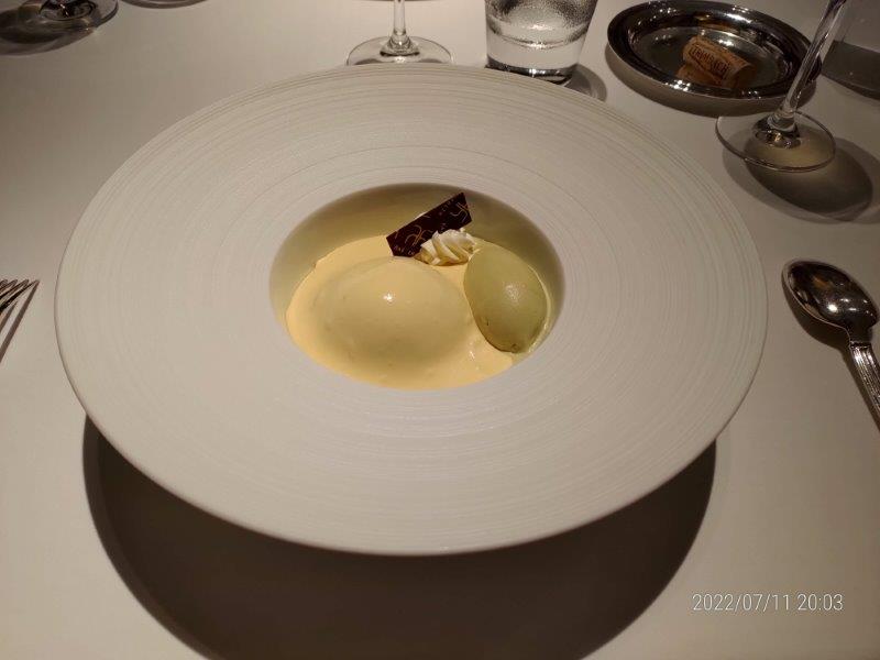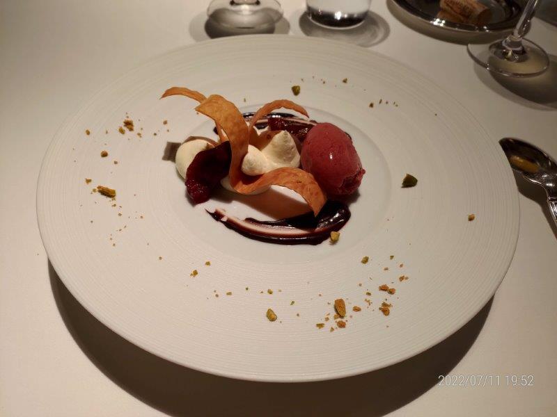 そして、数か月ぶりに来ました。やっぱり、ここは楽しい。特にスペシャリテのペーシュエーベルランを追加しました。ゆえにデザートが3品となりました。(笑)