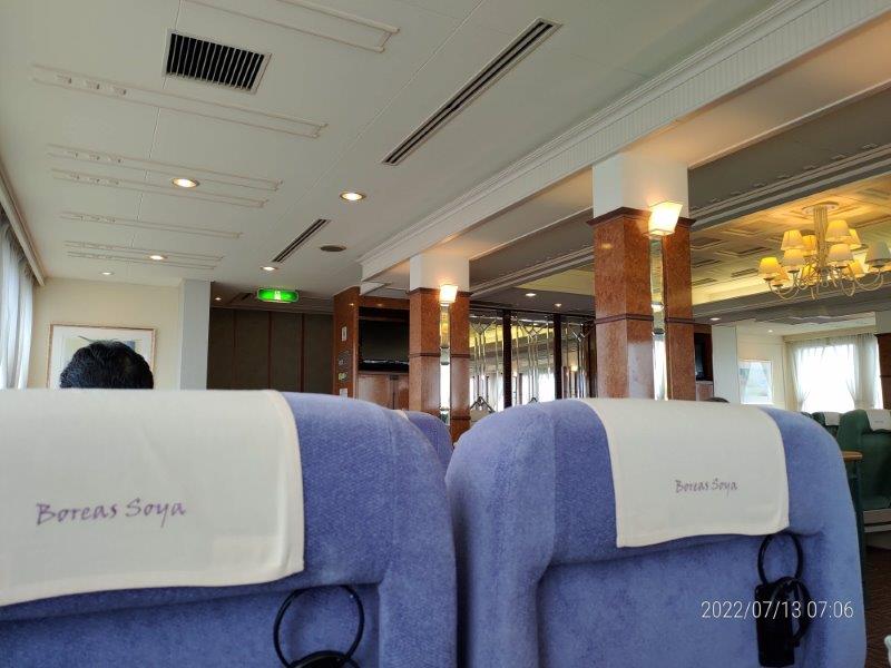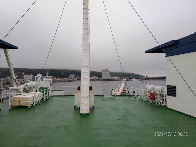 5時前に起きて、6時前にフェリーターミナルに向かうべくチェックアウトした。フェリーはボレアース宗谷(稚内発~香深着 06:30~08:25)です。事前に予約をしていたので、予約は1等だけ、2等で充分で料金も倍するけど、今回は事前に予約しておきたかったので、1等にした。1等席はキャパシティーの10パーセント程度。。。ガラガラで良かった。2等は朝に自動販売機でチケットを買えば、それで大丈夫です。