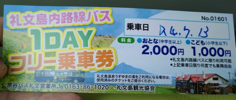 もう、礼文島に来て。フェリーターミナルで座っているしかない!!!と思ったけど。どうしようもないから路線バスで行けるところに行こうと、止まっているバスに乗ろうとする。行先は元地と書かれているが、それがどこかすらわからない!どこに行くのかもわからないけど、乗ろうとすると。バスの運転手さんが、「どこに行きたいの?」と聞いてくれた。私は「移動手段がなく。どこに行くのかわからないけど、どっかに行ける。このバスに乗りたい!」というと、私の持っているバスの時刻表を見て。「このシャトルバスに乗り、スコトン岬には10分くらいしか止まらないけど、それで行って帰ってきたら良い。」と教えてくれた。そして、「1日乗車券を買うと、その方が安い。」とまで教えてくれた。その教えに従って、シャトルバス香深フェリーターミナル9時25分発、スコトン岬10時13分着、スコトン岬10時28分発、香深フェリーターミナル11時16分着で、フェリーターミナルで止まっているバスで一日乗車券を買って、乗った!