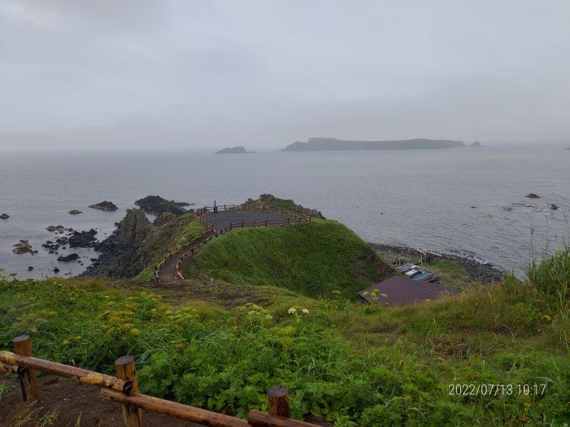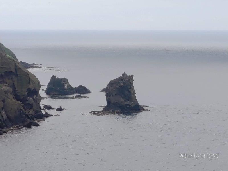 そして、かなり気分が良くなったので。13時15分の元地行のバスで桃岩と猫岩の見える桃台・猫台に行った。ここから見えるのが、有名な礼文島のある場所らしい。。若者はなんどもここに来るらしい。。。そこから歩いて、元地まで行き、暇なので軽くハンバーガーを食べたりして、バスが来たら帰った。。