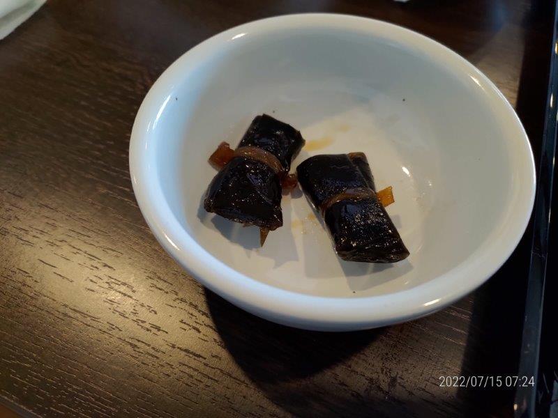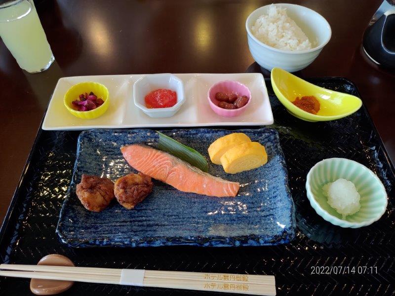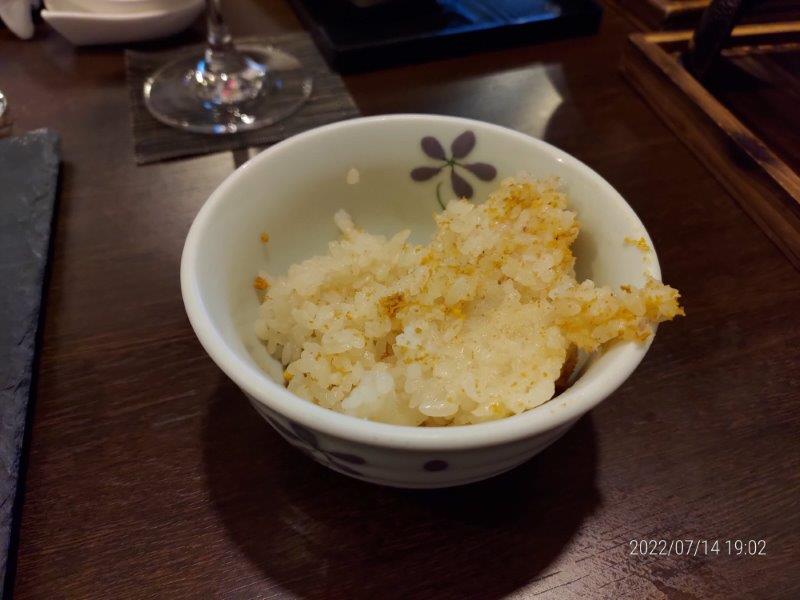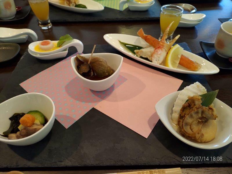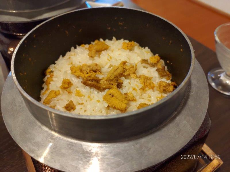 なんとか、ホテルに時間通りに帰って、少しすると夕食だ。2日目なので、少し変えてくれる。3日目だと元に戻るらしい。雲丹の炊き込みご飯が美味しかったかな。ワインも昨日の残りと新しく買ったワインで乾杯だ!