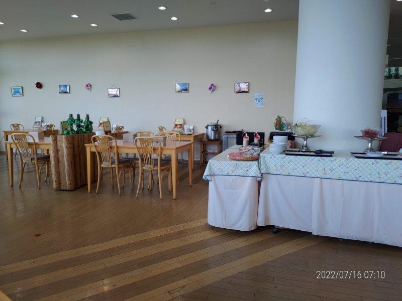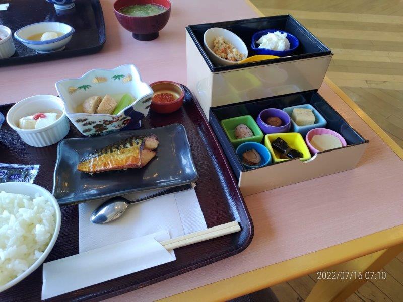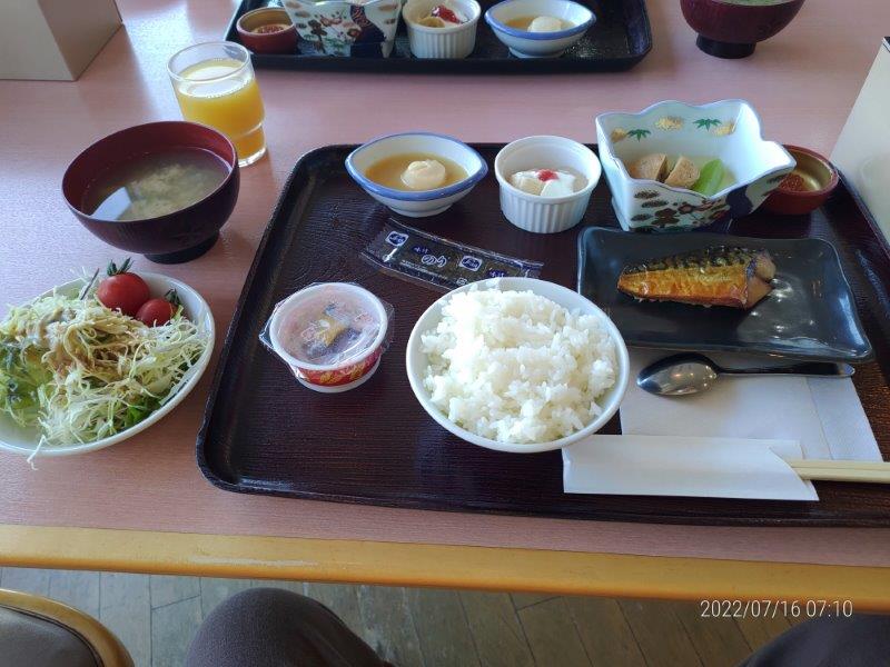 天塩のてしお温泉 夕映は朝ごはん付き、全く普通の観光ホテルの朝ごはんですね。でも、稚内だと高くつくので、少し距離はありますが、天塩まで来てよかった。そうそう、朝に温泉に入る人が少なかったので、一人ででっかい温泉を一人で入れて、良かった。向こうの方にキャンプ場もあるんですね。
