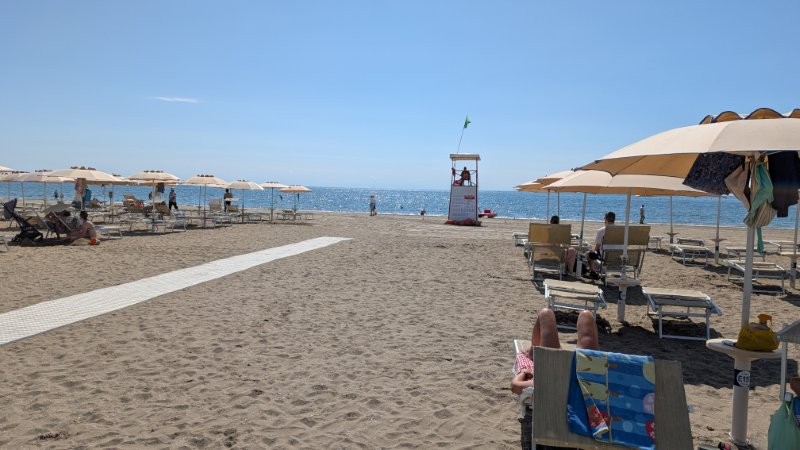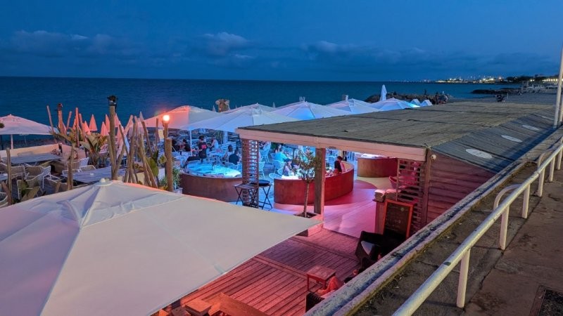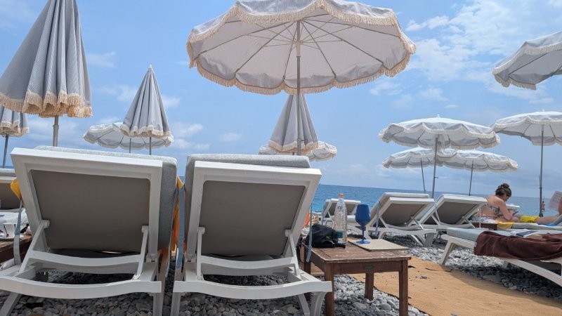 この日は、海の家「プラージュ・ボー・リヴァージュ・ニース(Plage Beau Rivage Nice)」へパラソルとベッド2つで50ユーロくらいだったと思います。