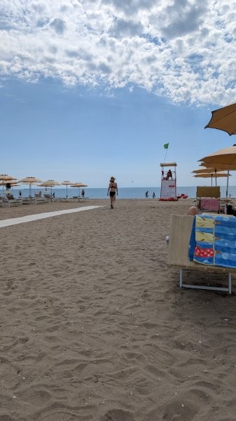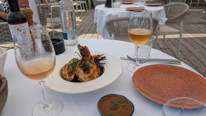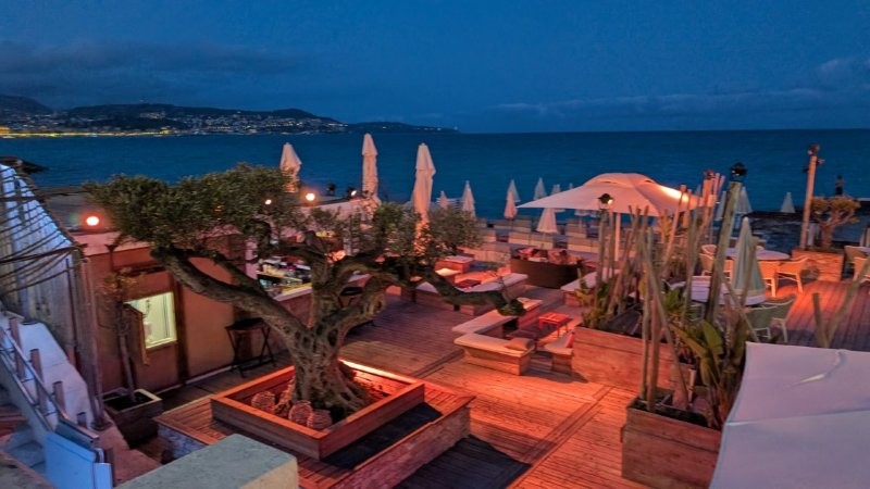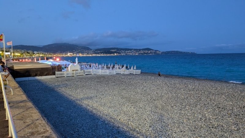 飲食物の持ち込みはできないので、ランチはそこでサラダとリゾットのようなものを注文しました。これで100ユーロくらいでしたが、美味しかったです。後から思えば、この海の家での一日が結局一番良かったかもしれません。ニースの海は基本的にすぐ深くなり、海岸も岩場なので、ヴェネツィアに比べて泳ぎやすいとは言えませんが、それでも「これぞニース」という雰囲気を満喫できました。