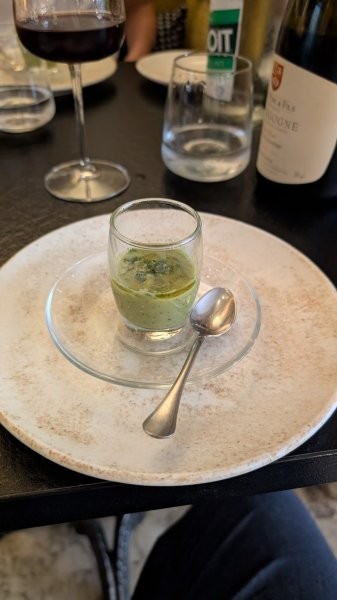 いつも通り、3時か4時頃には切り上げてホテルに戻り、シャワーを浴びてからディナーへ。この夜は、銀座の知人に紹介していただいた「La Table de KAMIYA」さんに行きました。ニースの中心部から電車で5駅ほど先の「Cros de Cagnes」という駅で降り、そこから海岸沿いを15分ほど歩いた場所にあります。ここのフレンチは、日本人シェフらしい繊細さがあり、とても美味しかったです。店内も涼しくて綺麗で、少し日本語も通じ、大変気に入りました。中心部から少し遠いこと以外は完璧です。夜遅くなると帰りの電車がなくなるので、その際はUberやタクシーを利用すれば問題ないでしょう。