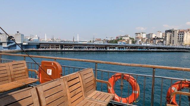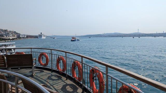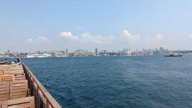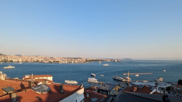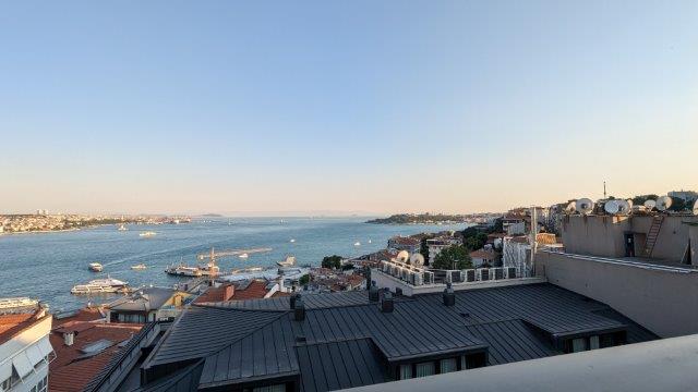 そして、ホテルに戻って、ホテルの屋上のレストランに行った。泊まったホテルはThe Artisan Istanbul MGallery 屋上のレストランはMadam Niçaだ。ここから見る海峡の景色は非常に良かった。天井も開けてくれてさらにいい感じに爽やかになった。