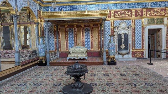 行けなかったトプカプ宮殿にチャレンジ、ここで失敗したのはチケットは日本語音声の機器がついているが、それはIDなしでは借りられない点だ。だから、パスポートを持っていこう。そうしないともったいない。朝早めにチケット売り場でチケットを購入すれば、そんなに大変ではないけど。音声案内の機器を借りるのに時間かかりそうです。