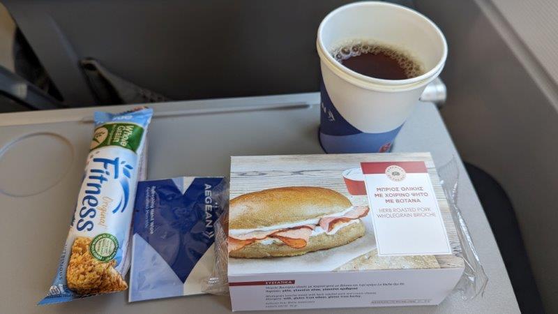 そして、飛行機内、イスタンブールからアテネに、アテネからサントリーニでも同じようなサンドイッチが出た。