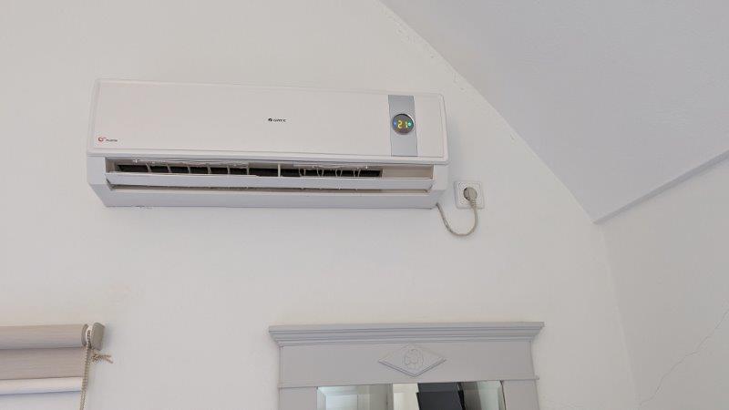 この後はバスだけど、ちょうど私たちが最後の客でバスにすぐに乗れた。あっという間にティラに行けて、ホテルにチェックインできた。良かった。良かった。下記が部屋のエアコン(笑)