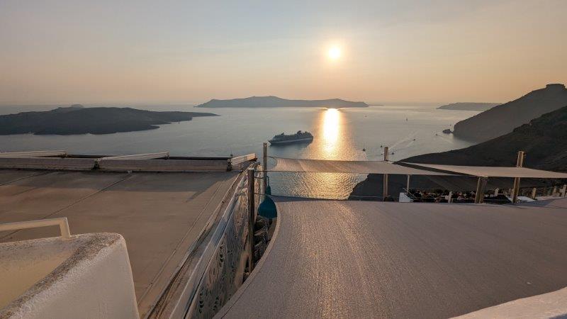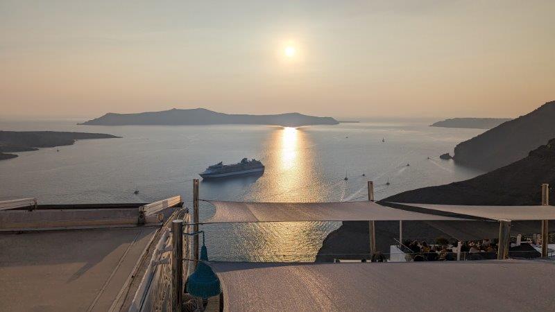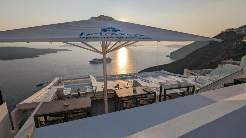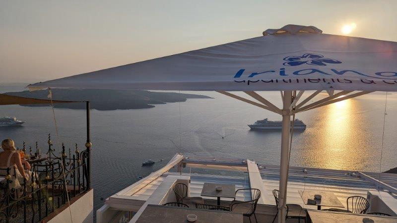 夕方にイアに移動、予約した夕日の見えるSphinx Wine Restaurantに行った。