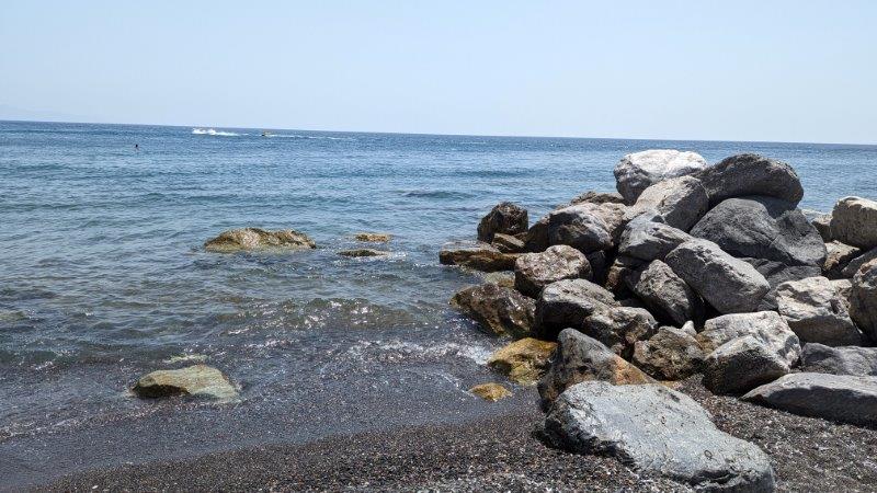 今日はティラからカマリに移動だ。サントリーニ島の東側に移動する。その前にもう一つ、有名な海水浴場ペリッサに行く。バスでそこまで行って、お昼ご飯をたべた。